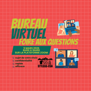 Le STTLSSS-CSN tiendra un bureau virtuel; foire aux questions le 5 février 2026 entre 8h00...