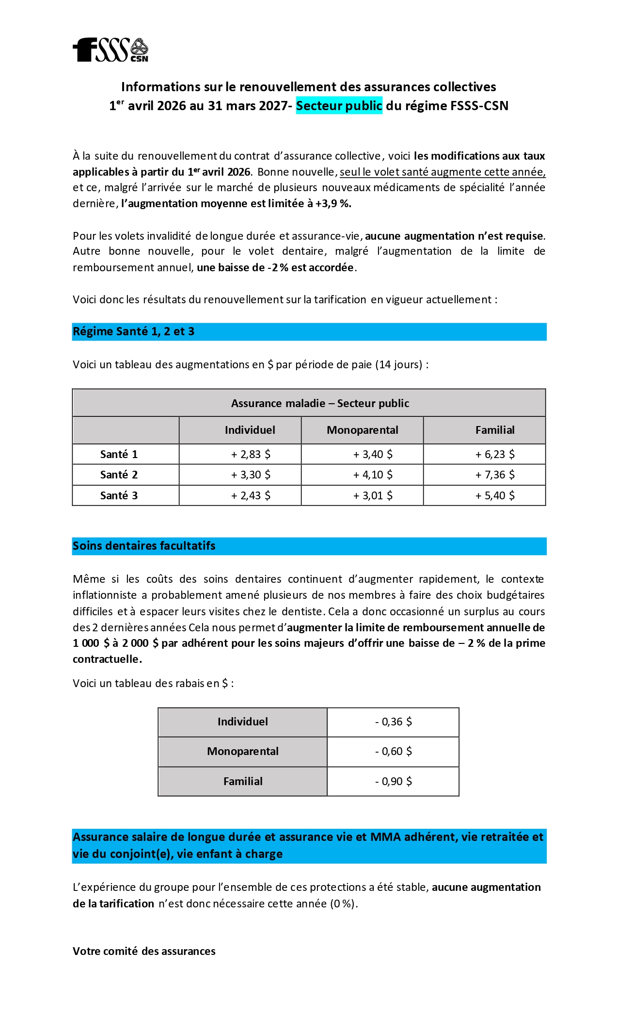 Informations sur le renouvellement des assurances collectives