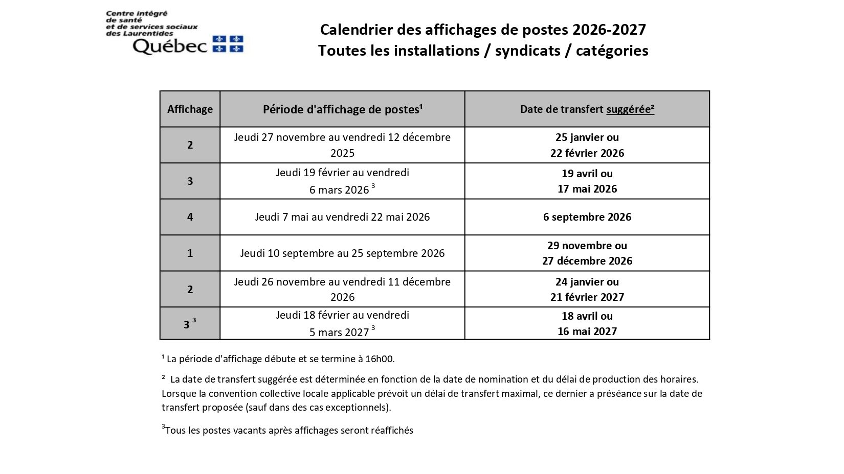 - Procédure de consultation et de réclamation d’un poste vacant après affichage