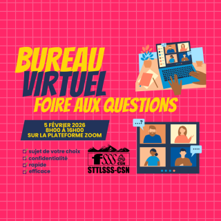 Le STTLSSS-CSN tiendra un bureau virtuel; foire aux questions le 5 février 2026 entre 8h00...